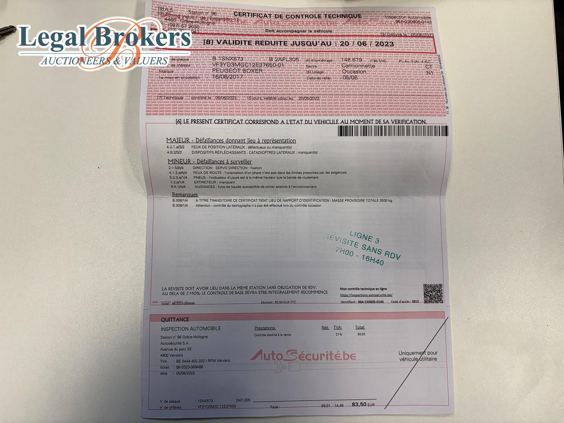 remarques | Certificat d'inspection rouge ! Voir photo. |